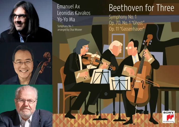 This is the fourth album in the ‘Beethoven for Three’ series. Each album, in addition to standard trio works, has featured a Beethoven symphony transcription by Shai Wosner (the initial release consists of Wosner’s transcriptions of the second and fifth symphonies). This latest album opens with his version of the first symphony, which I approached with trepidation. How can a trio abrupt passions and vivid colors of Beethoven’s original?