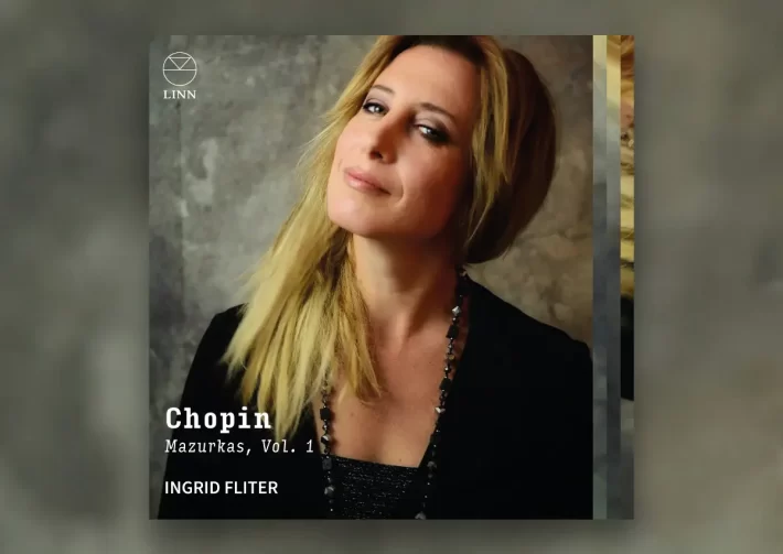 In the middle sets, Chopin takes a freer approach to the Mazurka form, exploring texture and color with particular boldness. In the C major from Op. 24 (track 17), he threads trills, runs, and inner-voice melodies into a lively mix that Fliter plays with buoyant poise, her light touch lending an easy, improvisatory feel. In Op. 24 No. 4 (track 19), her graceful shaping yields a quieter atmosphere, polished with a touch of elegance.