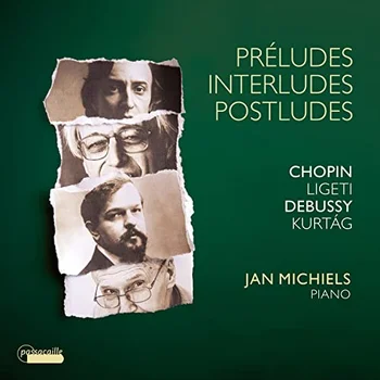 In his new project – the complete Chopin and Debussy prcludes along with selected works by Kurtàg and Ligeti – Jan Michiels invites the listener into the “world of the Parisian salon”, as the booklet states. Michiel indeed goes the lengths to recreate this 19th-century Proustian concert experience, right down to the pianos he uses. Playing Chopin and Debussy on an 1894 Erard is not new by any means but the intriguing twist is his idea of featuring Ligeti (1923-2006) and Kurtàg (1926-) on an 1876 Steinway: certainly a creative way of stepping backwards into time.